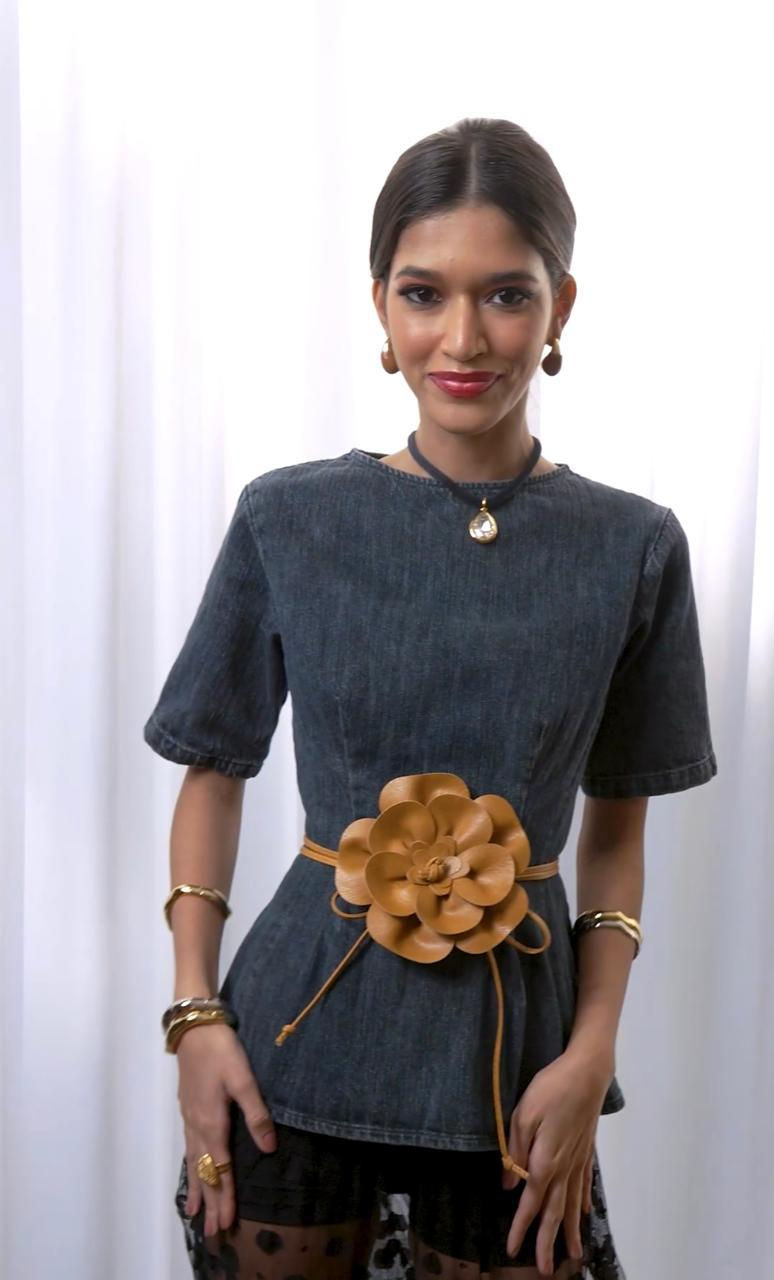 CINTO FLOR COURO MARROM